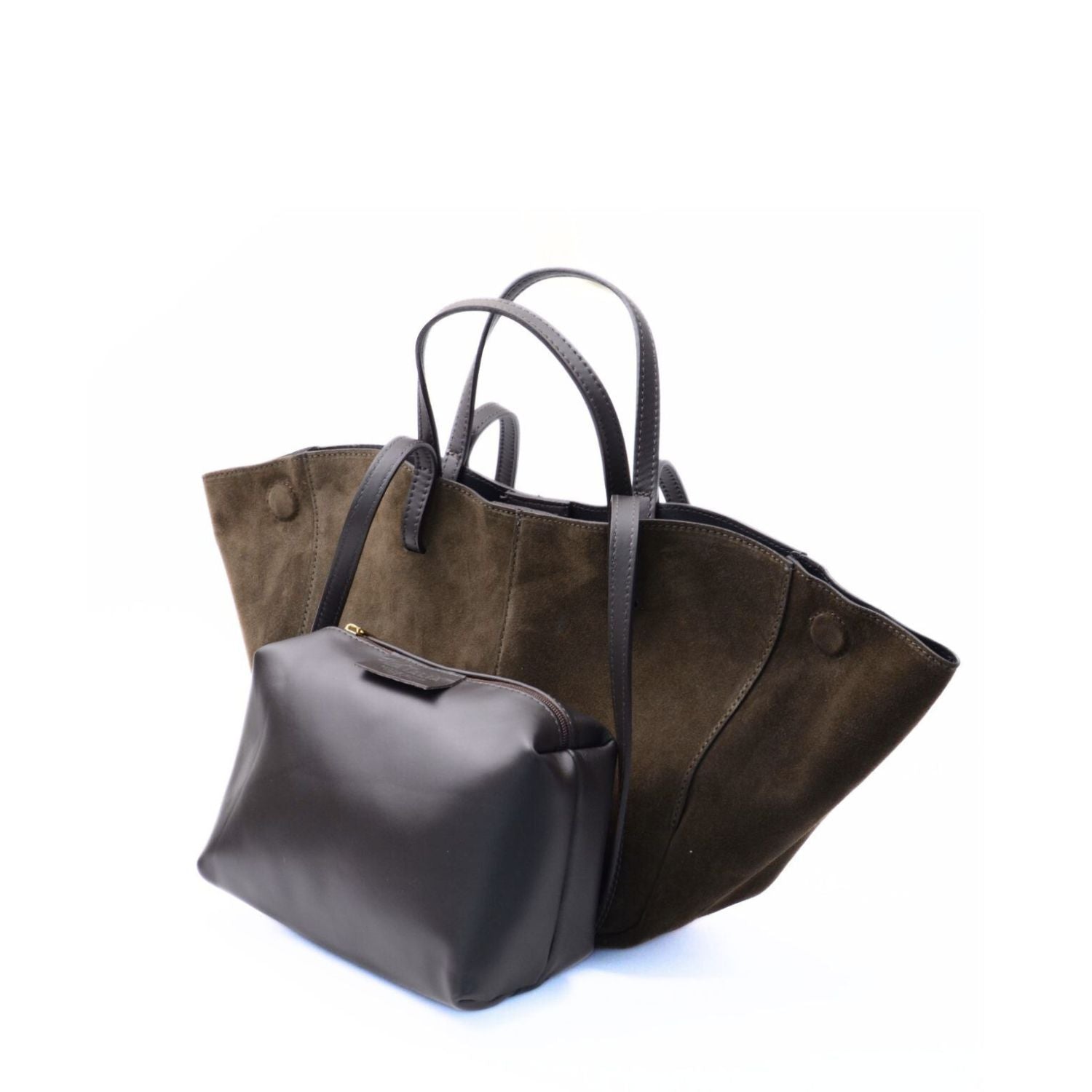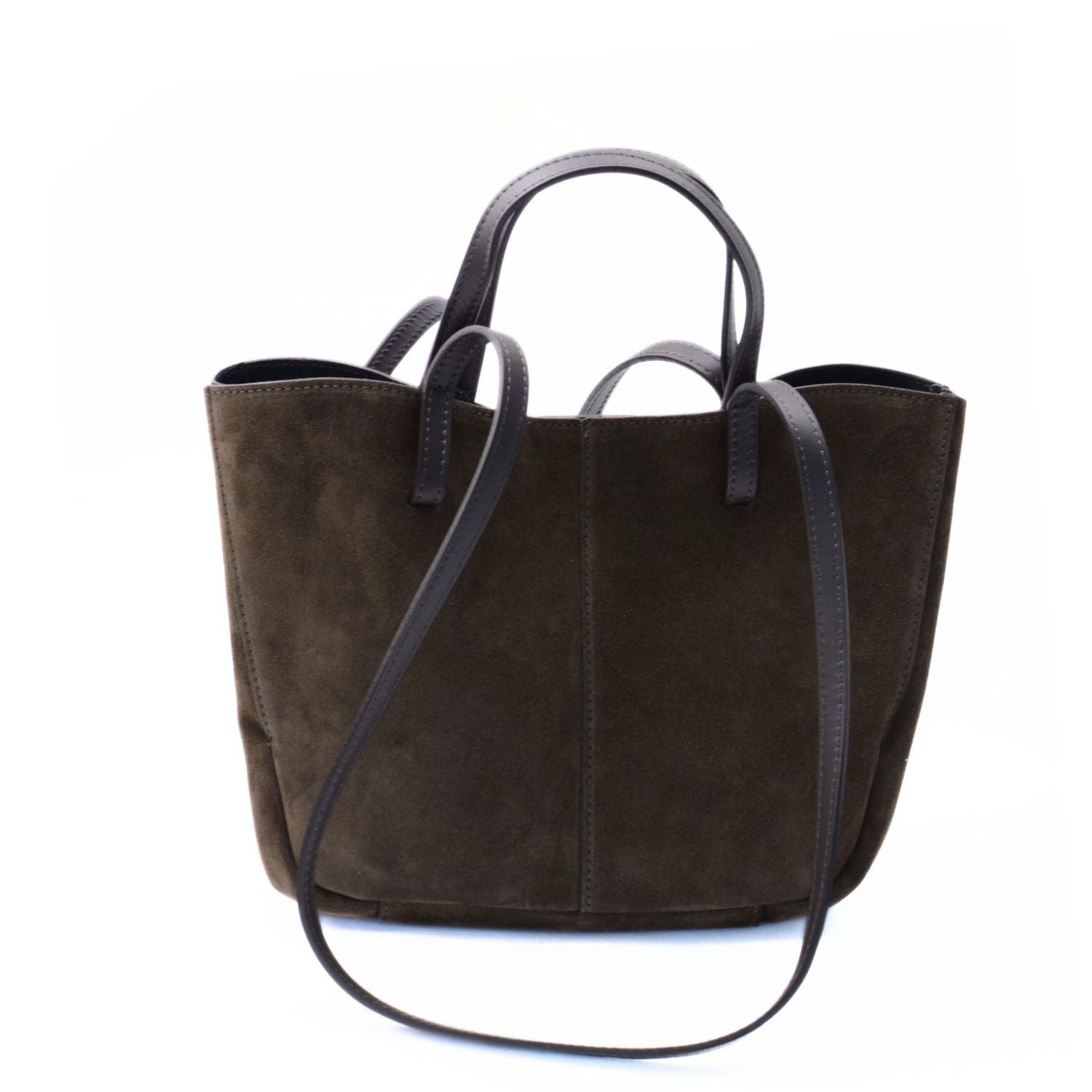 Nola  är en rymlig och mjuk väska i mocka som utan problem rymmer en MacBook Pro. Tack vare magnetknappar i sidorna kan väskan enkelt göras mindre och anpassas efter behov. Utrustad med två handtag och två längre axelremmar för flexibel bärkomfort. På insidan finns en separat liten necessär i äkta läder som håller ordning på dina mindre saker. En elegant och praktisk väska för både jobb och vardag.
