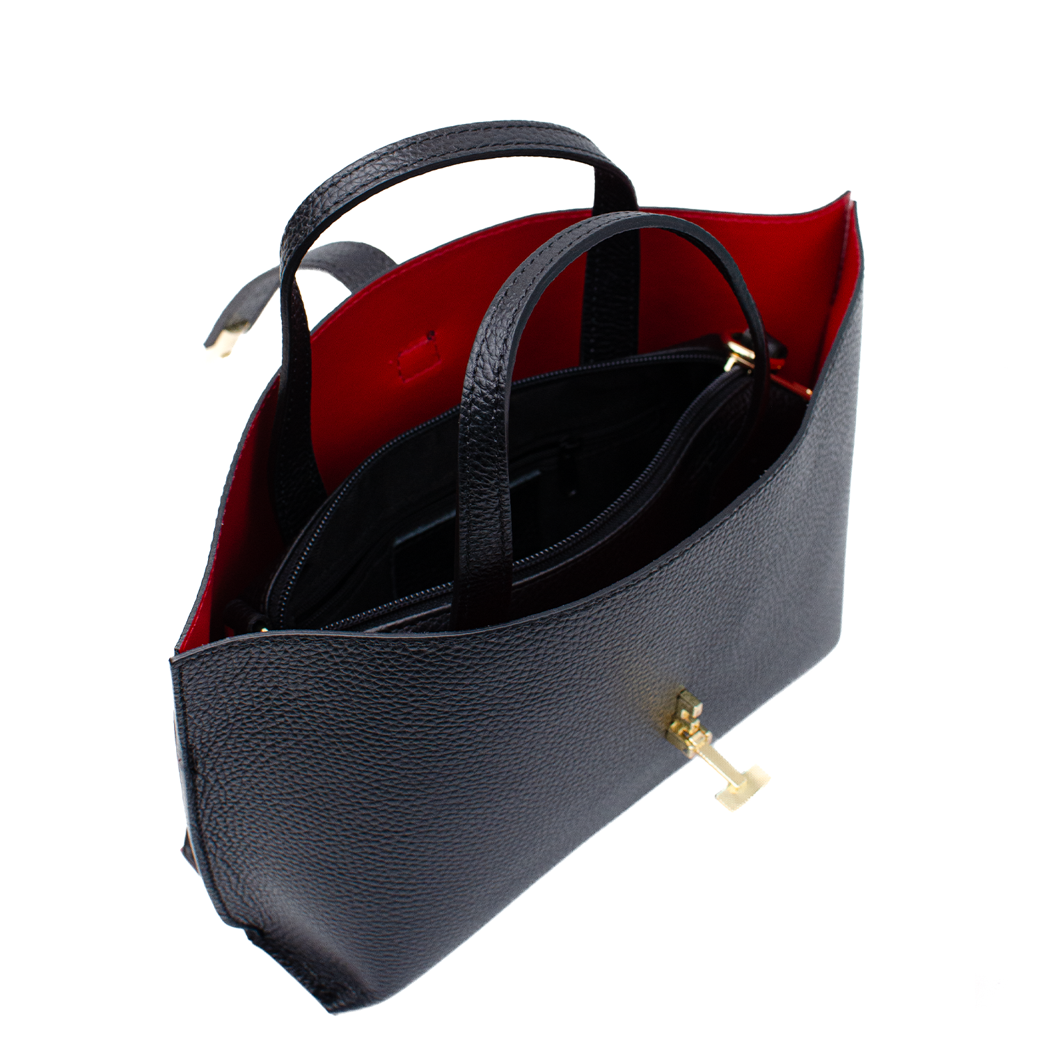 Elegant väska med stilrent lås och praktisk design. Inuti finns ett fastsytt fack som påminner om en liten påse, vilket ger totalt tre separata fack för perfekt ordning på dina saker. Den långa axelremmen gör väskan bekväm att bära över axeln.