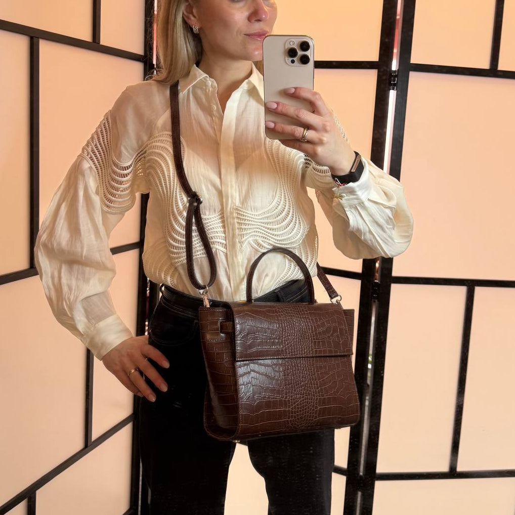 SAMPLE Arezzo Läderväska Croco Brun