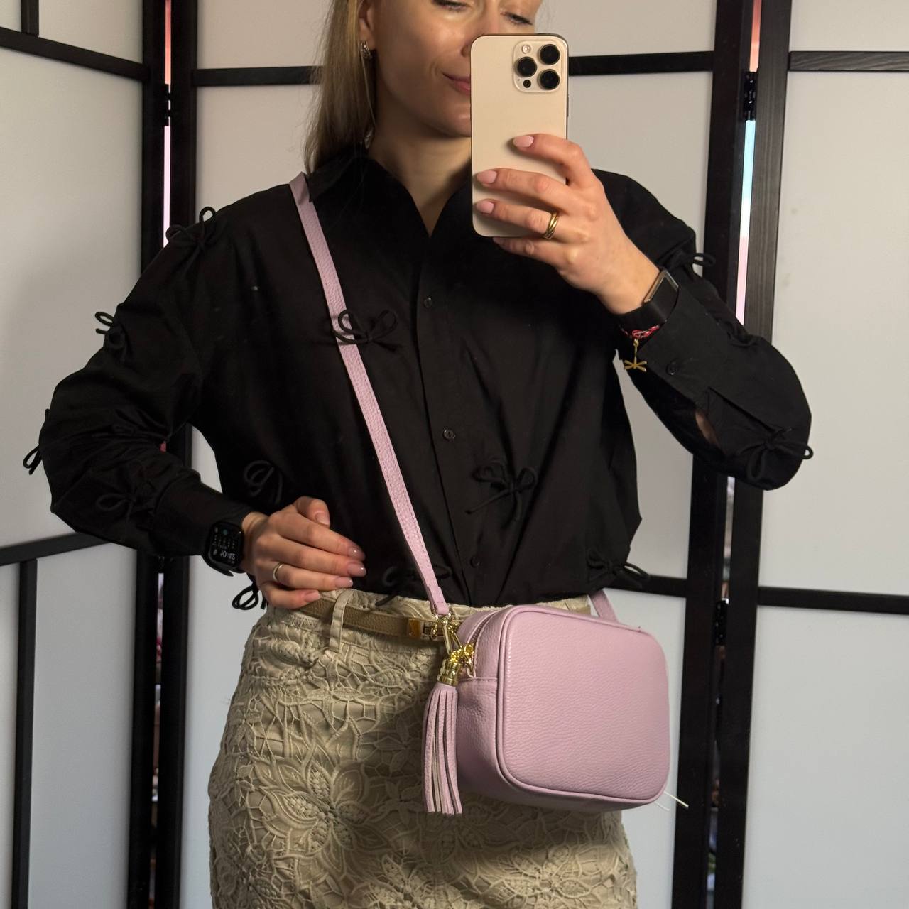 – Undvik kontakt med vatten. Om väskan blir blöt – torka försiktigt med en mjuk trasa.