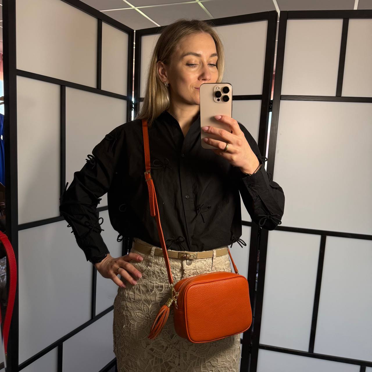 Sample Kameraväska i läder Papaya