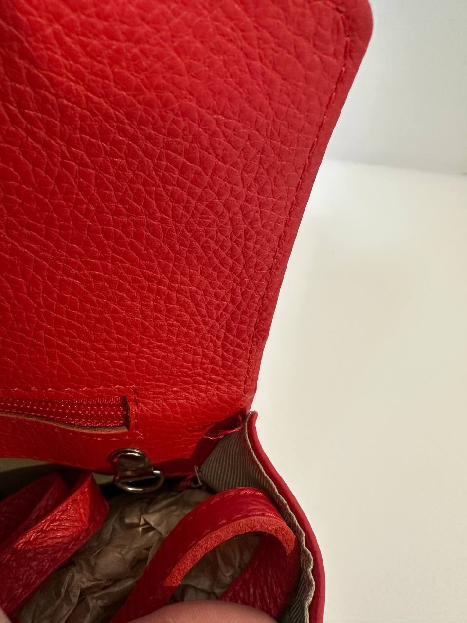 – Undvik kontakt med vatten. Om väskan blir blöt – torka försiktigt med en mjuk trasa.