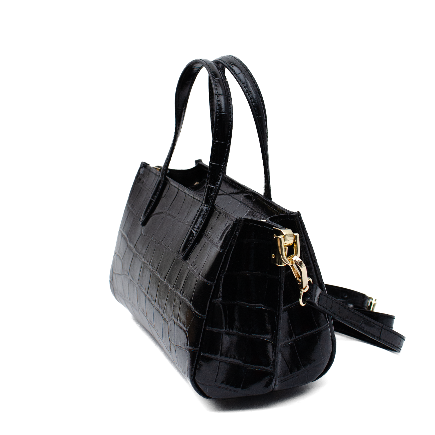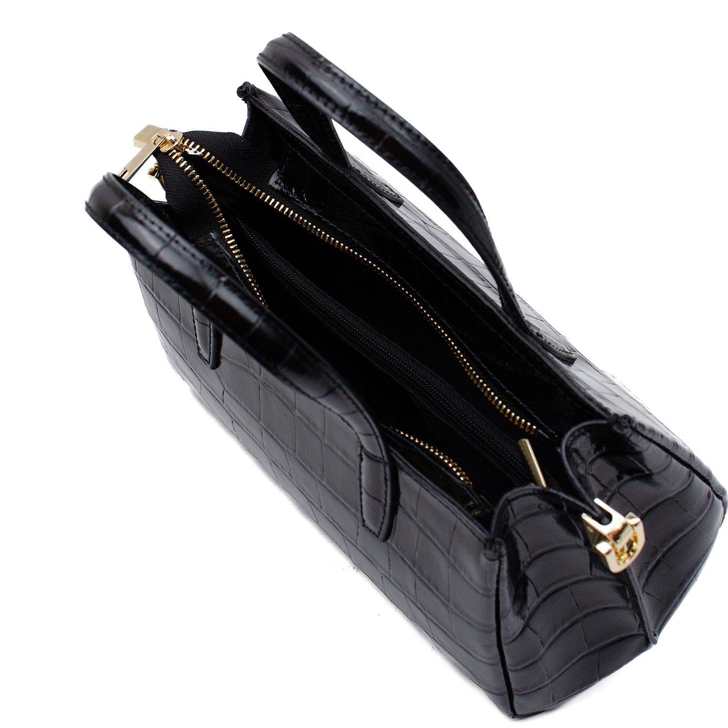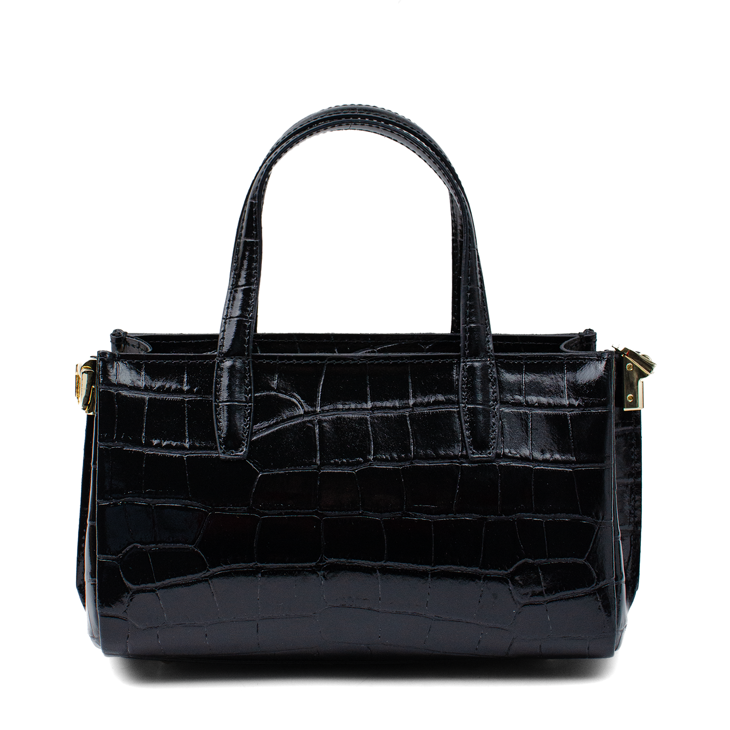 Väska i blankt läder med krokoprägling (inte äkta krokodil).