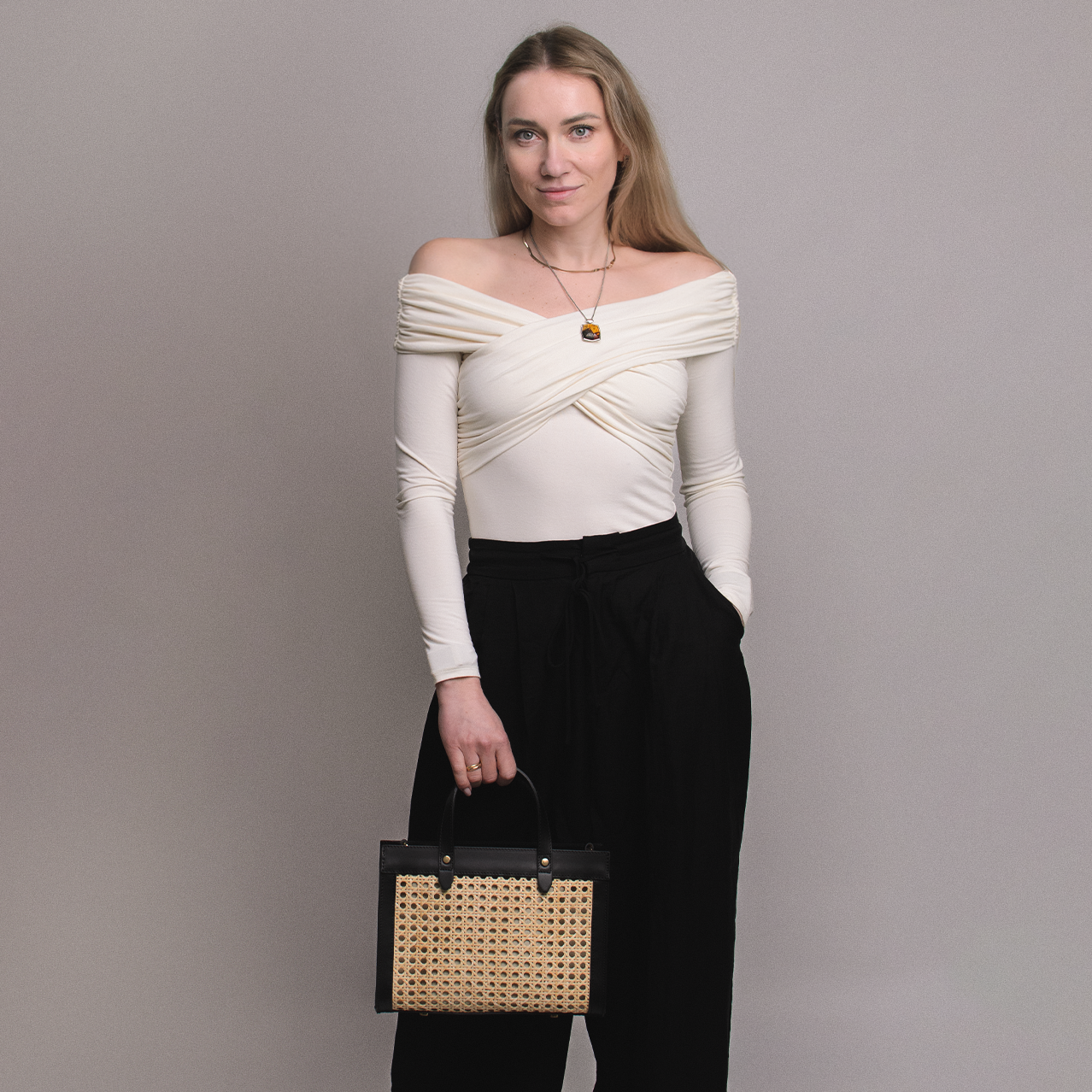Väska "Bronte" i rotting och läder, Svart