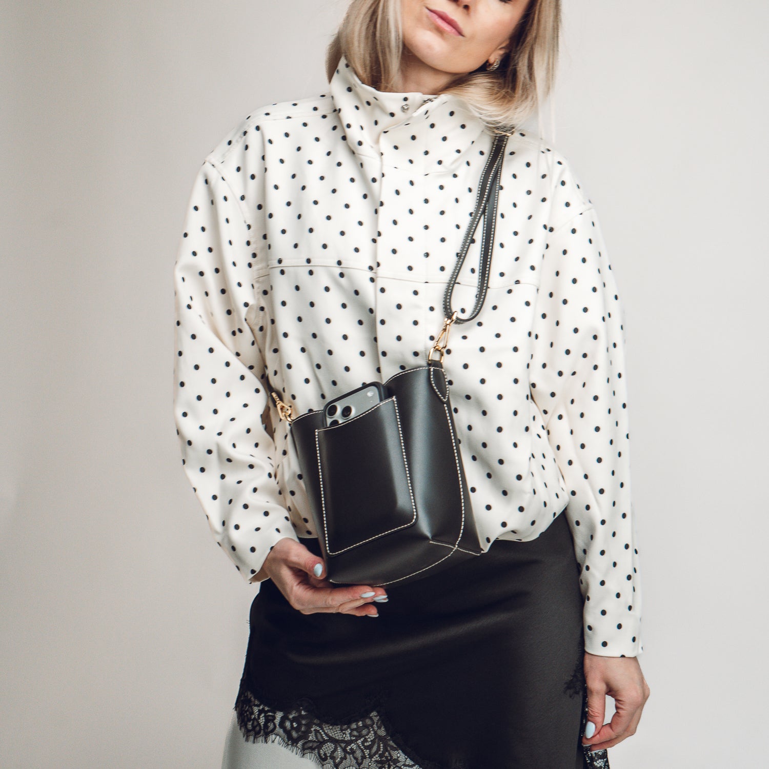 – Undvik kontakt med vatten. Om väskan blir blöt – torka försiktigt med en mjuk trasa.