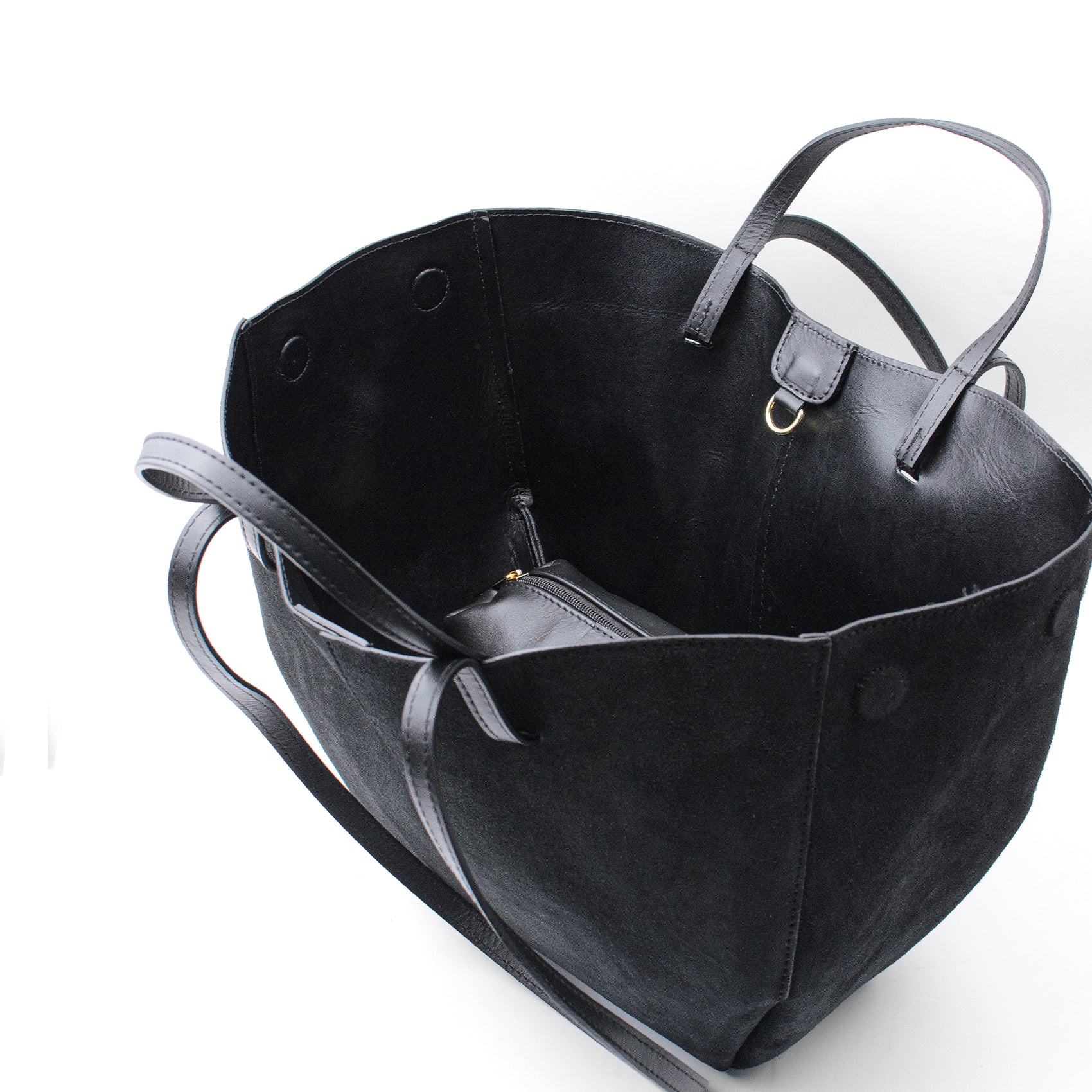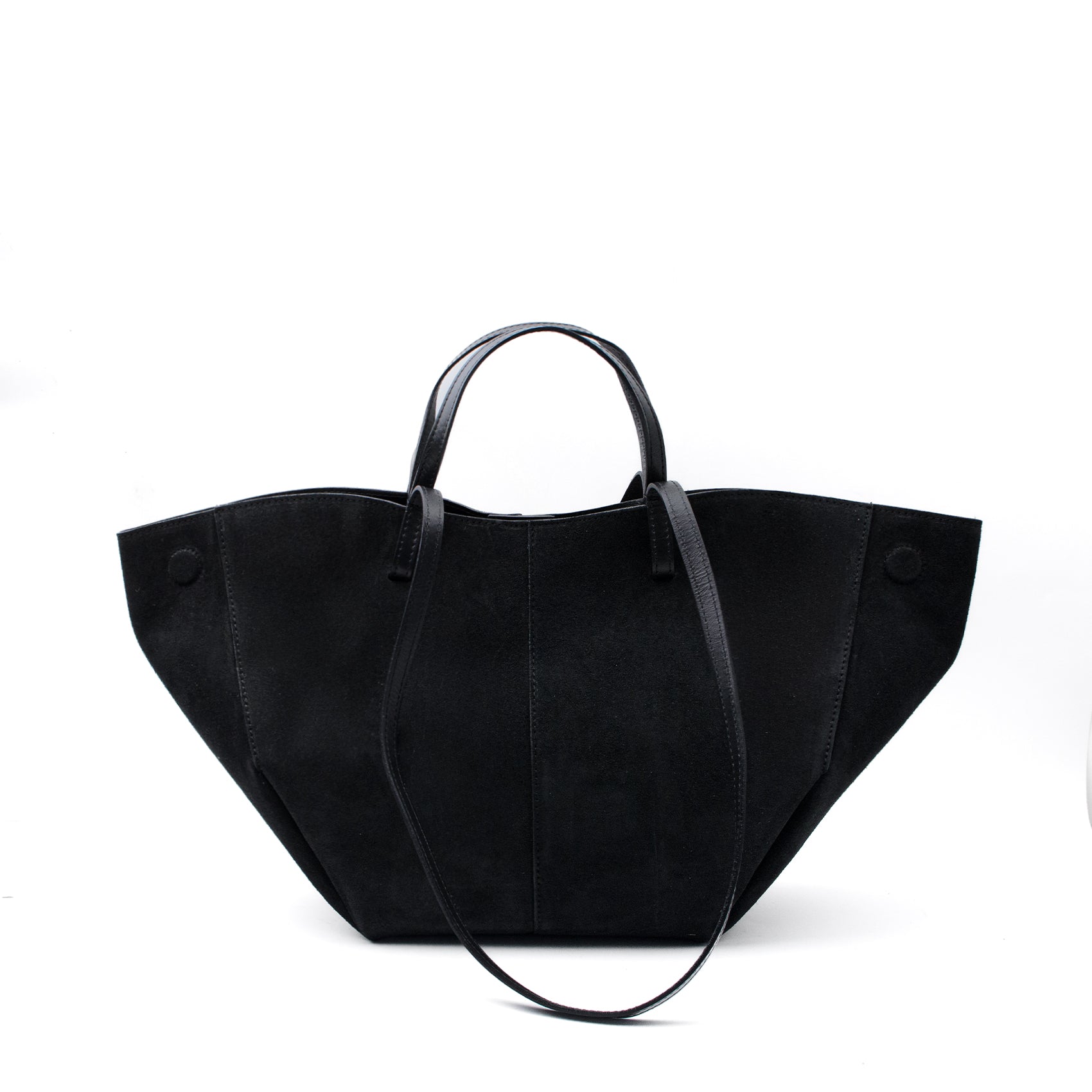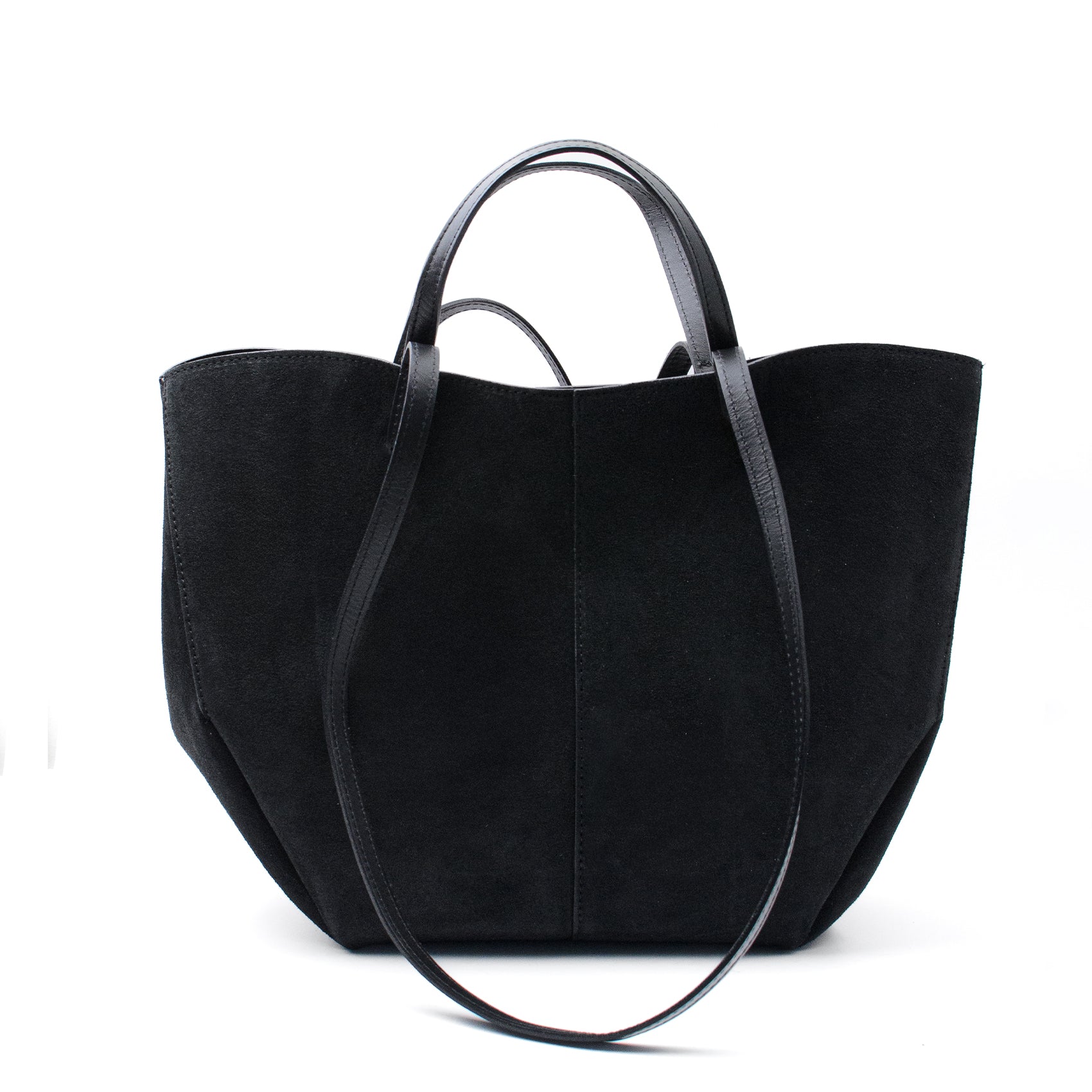 Nola XL är en rymlig och mjuk väska i mocka som utan problem rymmer en större dator. Större än "vanlig" Nola väska.