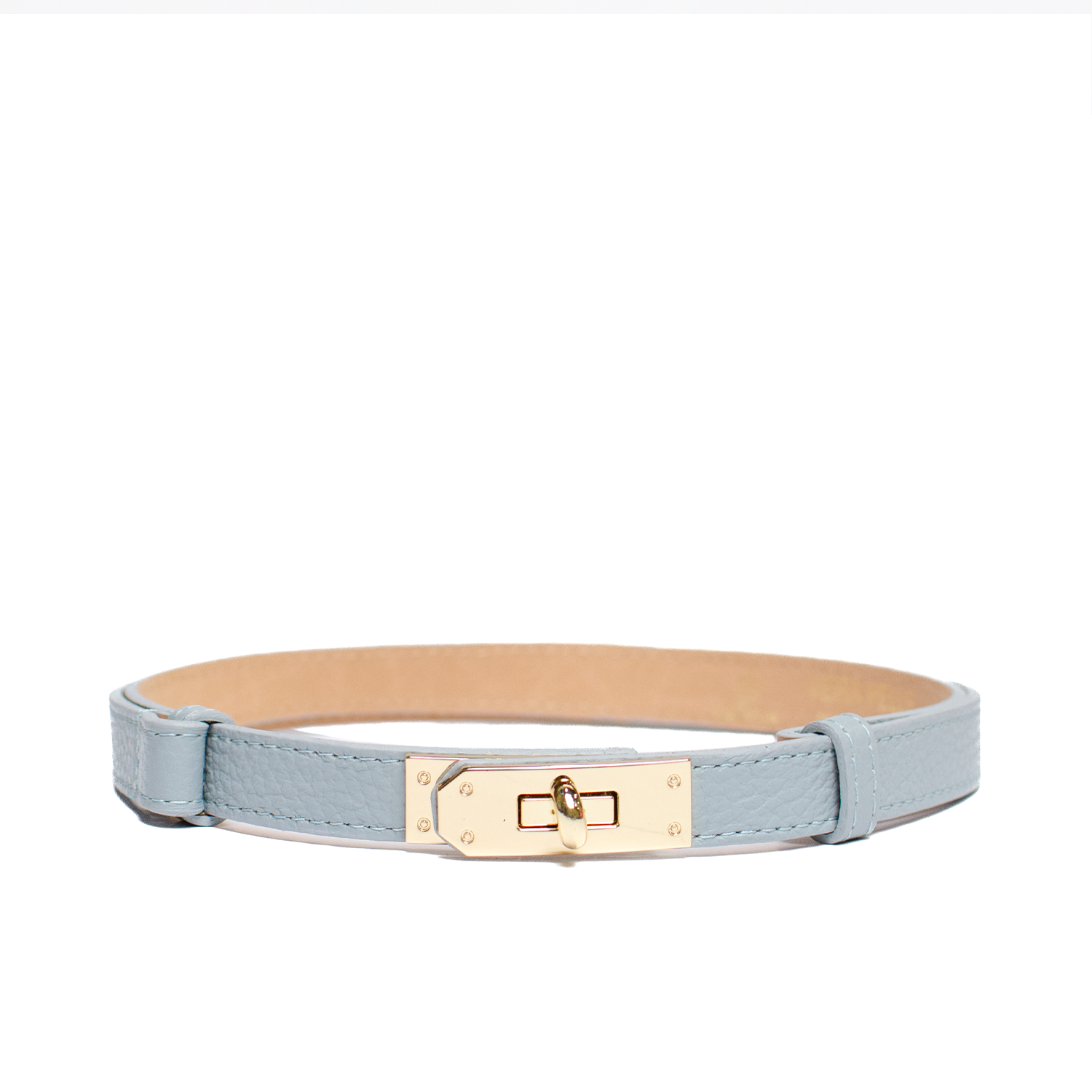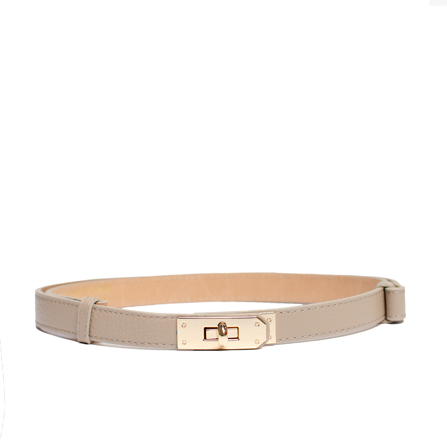 Detta stilrena bälte är tillverkat av äkta läder och har en exklusiv känsla. Med sin justerbara längd från 50 cm till 90 cm och till 120 cm, passar det perfekt för olika midjemått. Det gyllene vridlåset ger en sofistikerad touch och gör bältet både praktiskt och elegant. Perfekt för att komplettera din outfit med en tidlös och lyxig detalj.