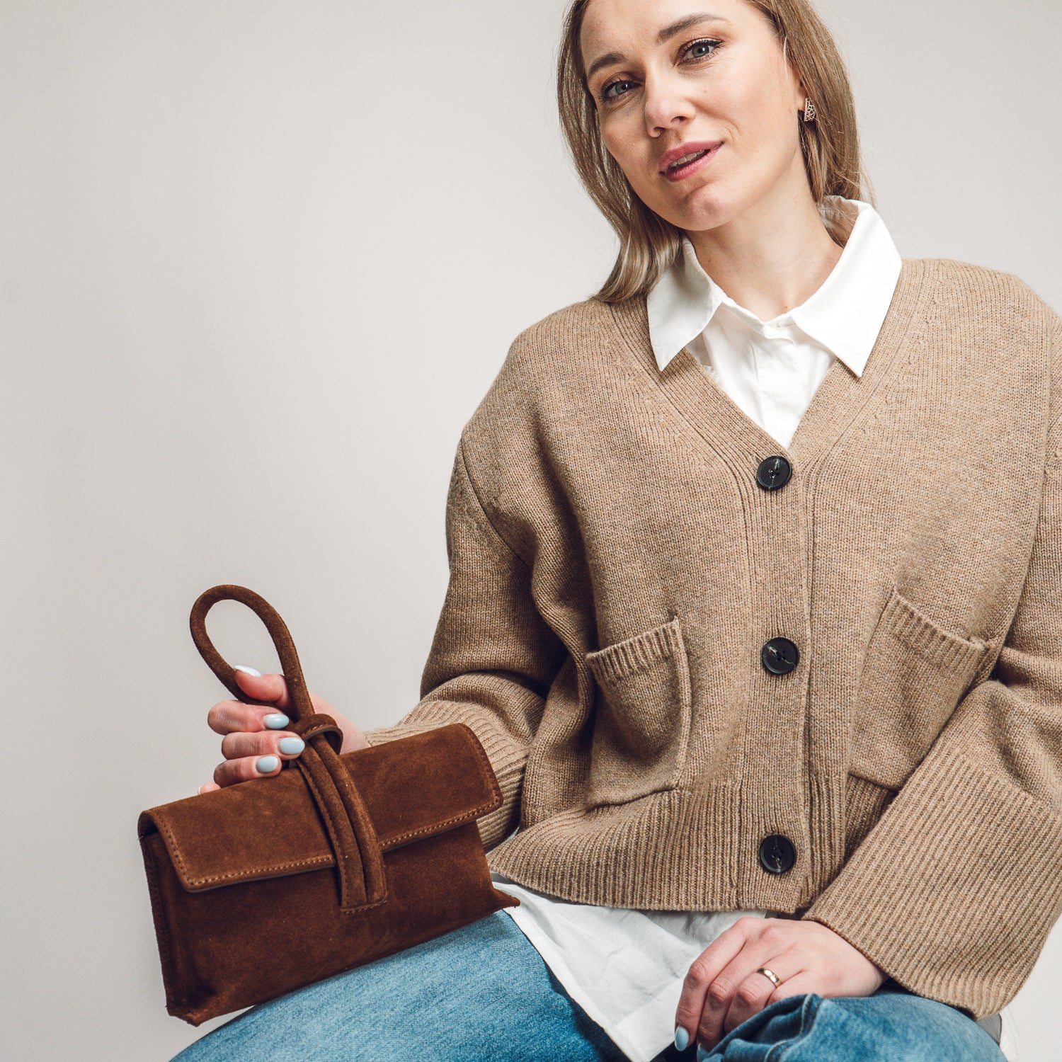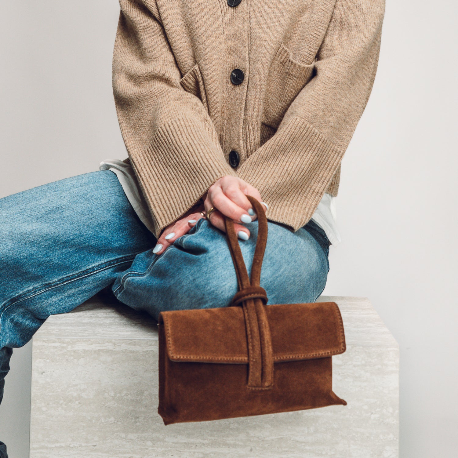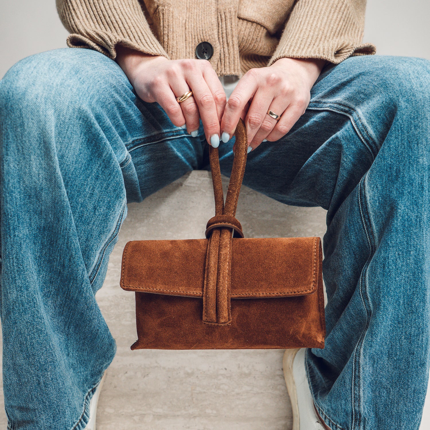 En smidig och sofistikerad mockaväska som är en idealisk följeslagare för festliga tillfällen. Använd den som en elegant kuvertväska eller fäst den med den medföljande axelremmen. Väskan erbjuder praktiska förvaringslösningar med två interna fack, varav ett är försedd med en smidig dragkedja.