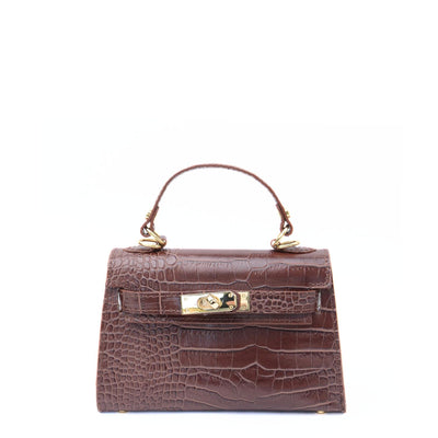Bag "Ancona" in croco, Chocolate
