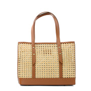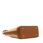 Straw bag with leather handle maxi brown